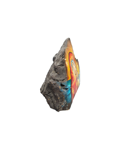 Βυζαντινή χειροποίητη αγιογραφία σε φυσικό κούτσουρο πλατάνου, φιλοτεχνημένη με τη μέθοδο της αυγοτέμπερας.