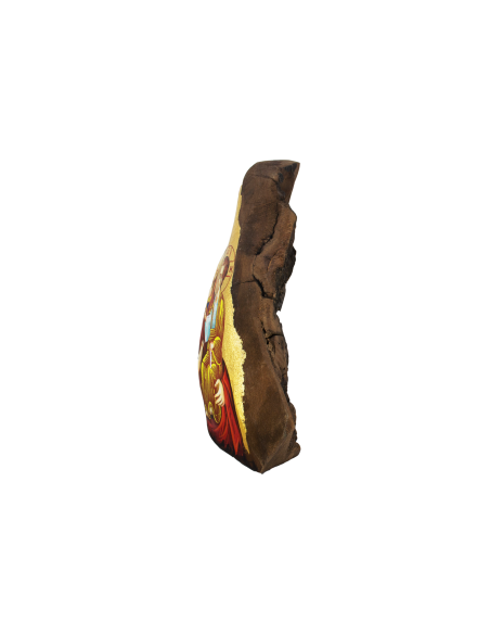 Βυζαντινή χειροποίητη αγιογραφία σε φυσικό κούτσουρο πλατάνου, φιλοτεχνημένη με τη μέθοδο της αυγοτέμπερας.