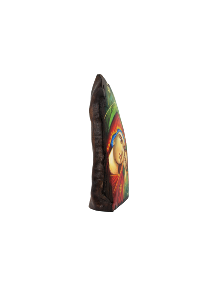 Βυζαντινή χειροποίητη αγιογραφία σε φυσικό κούτσουρο πλατάνου, φιλοτεχνημένη με τη μέθοδο της αυγοτέμπερας.