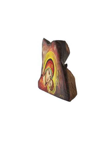 Βυζαντινή χειροποίητη αγιογραφία σε φυσικό κούτσουρο πλατάνου, φιλοτεχνημένη με τη μέθοδο της αυγοτέμπερας.