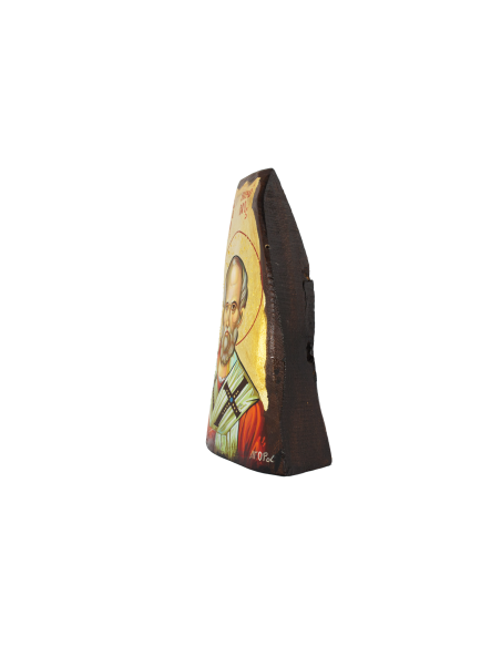 Βυζαντινή χειροποίητη αγιογραφία σε φυσικό κούτσουρο πλατάνου, φιλοτεχνημένη με τη μέθοδο της αυγοτέμπερας.