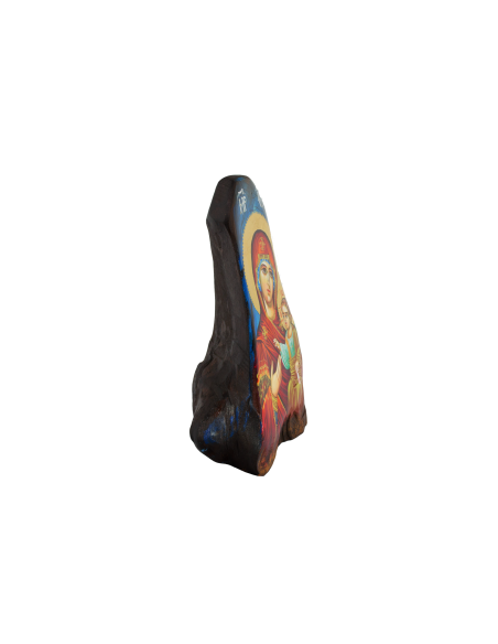 Βυζαντινή χειροποίητη αγιογραφία σε φυσικό κούτσουρο πλατάνου, φιλοτεχνημένη με τη μέθοδο της αυγοτέμπερας.