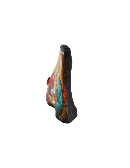 Βυζαντινή χειροποίητη αγιογραφία σε φυσικό κούτσουρο πλατάνου, φιλοτεχνημένη με τη μέθοδο της αυγοτέμπερας.