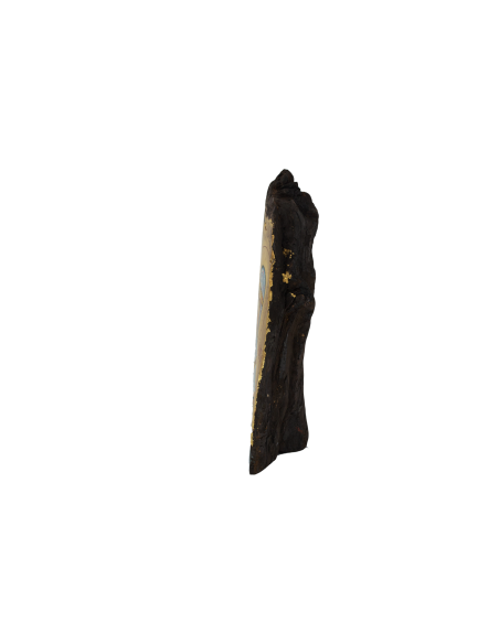 Βυζαντινή χειροποίητη αγιογραφία σε φυσικό κούτσουρο πλατάνου, φιλοτεχνημένη με τη μέθοδο της αυγοτέμπερας.