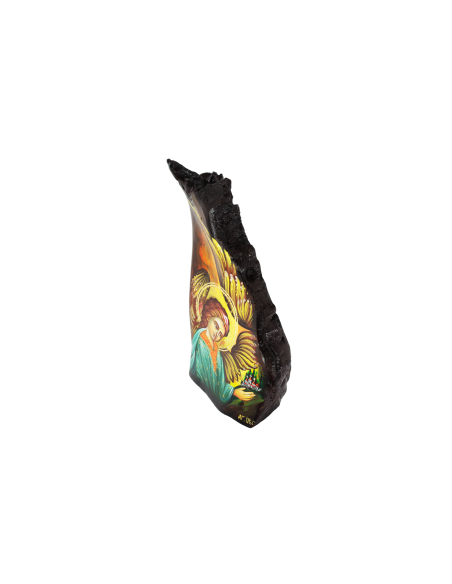 Βυζαντινή χειροποίητη αγιογραφία σε φυσικό κούτσουρο πλατάνου, φιλοτεχνημένη με τη μέθοδο της αυγοτέμπερας.