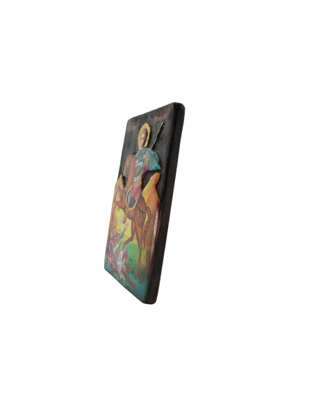 Σκαφτή αγιογραφία σε φυσικό ξύλο.
