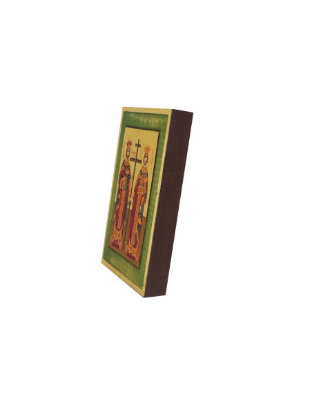 Η Αγία Ελένη, μητέρα του Αγίου Κωνσταντίνου, αφιέρωσε τη ζωή της στη φιλανθρωπία και στη διάδοση της χριστιανικής διδασκαλίας. Σε αυτήν αποδίδεται η εύρεση του Τιμίου Σταυρού. Απεικονίζεται σχεδόν πάντα μαζί με τον υιό της Άγιο Κωνσταντίνο, με τον Τίμιο Σταυρό ανάμεσά τους. Εορτάζουν στις 21 Μαΐου.
