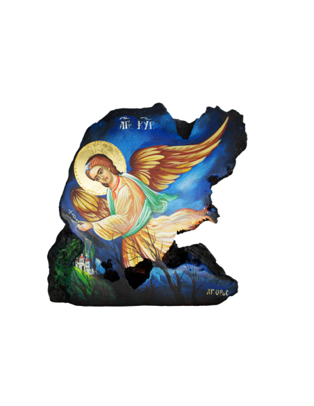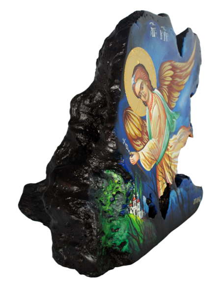 Byzantine handmade hagiography on natural plane tree stump, created with the method of egg tempera.