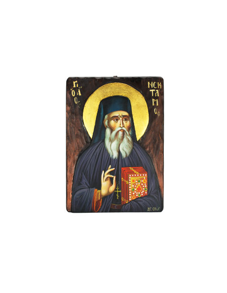 Byzantine handmade hagiography on natural plane tree stump, created with the method of egg tempera.