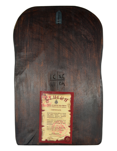 Написаная по старинной традиционной Афонской темперной технике (свежим яйцом) и золотом на основе дерева.