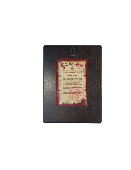 Написаная по старинной традиционной Афонской темперной технике (свежим яйцом) и золотом на основе дерева.