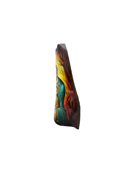 В Келии Святого Георгия на Святой Горе Афон Иконописцы выполняют эксклюзивные иконы.Они выполняются в единственном экземпляре.В чём же эксклюзивность этих икон: для изображения Пресвятой Богородицы,Спасителя или святых выбирается ствол дерева ,он очень долго высушивается и только после этого обрабатывается для изготовления иконы,иногда богомазы выбирают даже пеньки деревьев (видать на то Воля Божия), чтобы из простого полена получилась икона.Процесс выбора материала ( дерева ) для изготовления иконы очень долгий. Монахи постоянно обращаются с молитвой к Богу ,чтобы Он указал им правильный выбор.Вот поэтому эти иконы получаются как произведения искусства их невозможно повторить.Но для православного человека эти Образы будут вызывать желание непрестанно обращаться с молитвой к Богу.