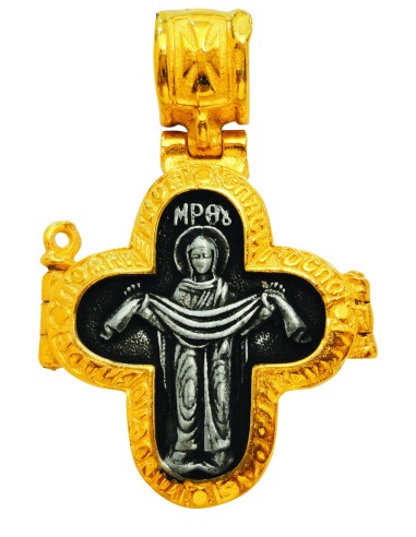С двухсторонним изображением Спасителя Иисуса Христа,Пресвятой Богородицы, Иоанна Крестителя, Архангела Михаила,Ангела Гаврила и Пресвятой Богородицы (Покрова Богородицы ) и (Святой Пояс Богородицы )